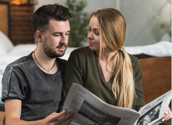 Young couple reading the news.